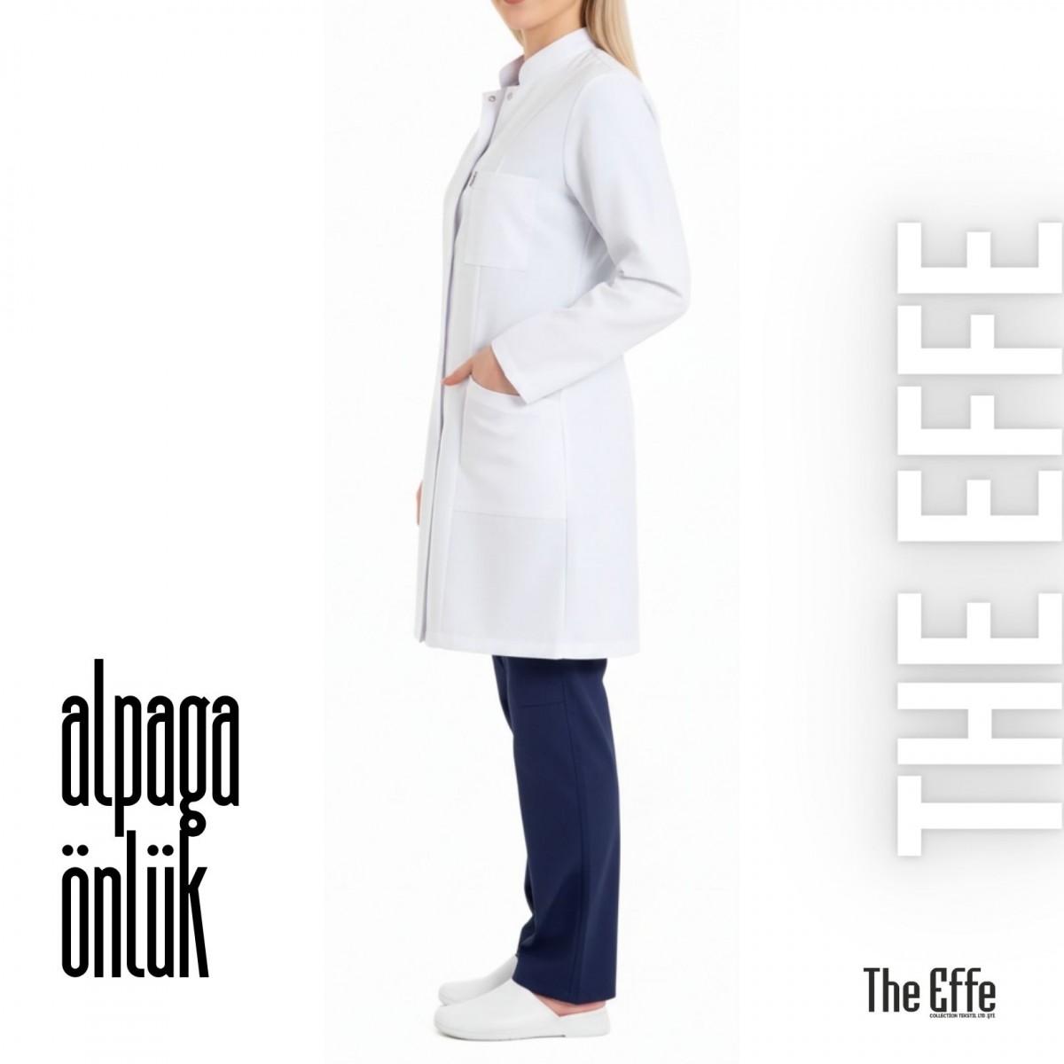 Alpaka Önlük Beyaz - 3 Cepli - Bayan